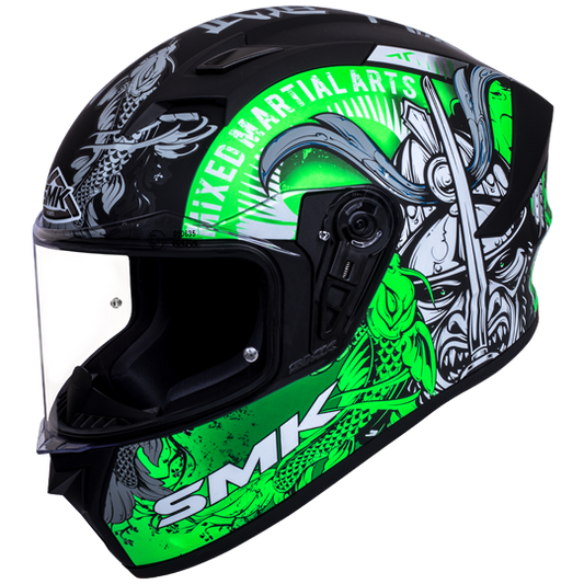 SMK Stellar Sports Samurai Gloss Black Grey Green (GL268) Helmet