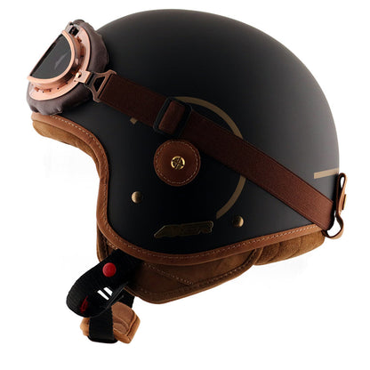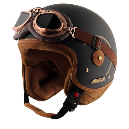 The classic open-faced helmet look is perfect, with the shape. In addition to this, the stylish goggles come with leather straps that give them a steampunk look and fit perfectly around one’s head, ensuring protection against dust, wind, and less-than-ideal weather conditions.
