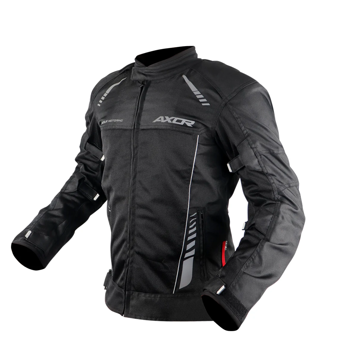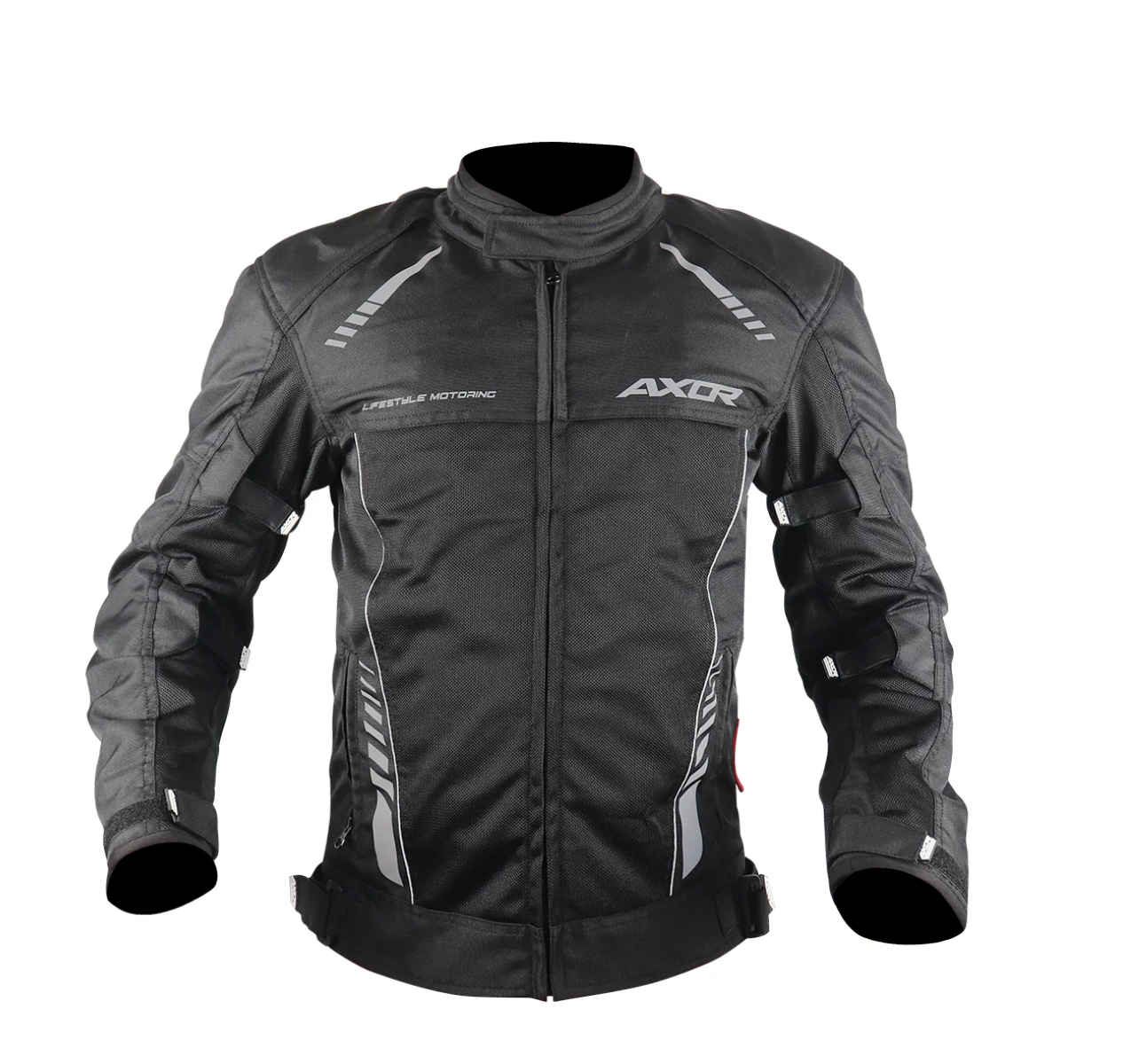 10 vents with zip at both shoulders for proper airflow throughout the jacket for relaxed and comfortable riding. 3M TPR Scotochlite reflector branding and design for better visibility. Double stitch for durability. 4 exterior water-resistant pocketsnt & 2 rear). Aluminum hook for dangling the belongings. Neoprene finish at the collar and waist for comfortable riding.