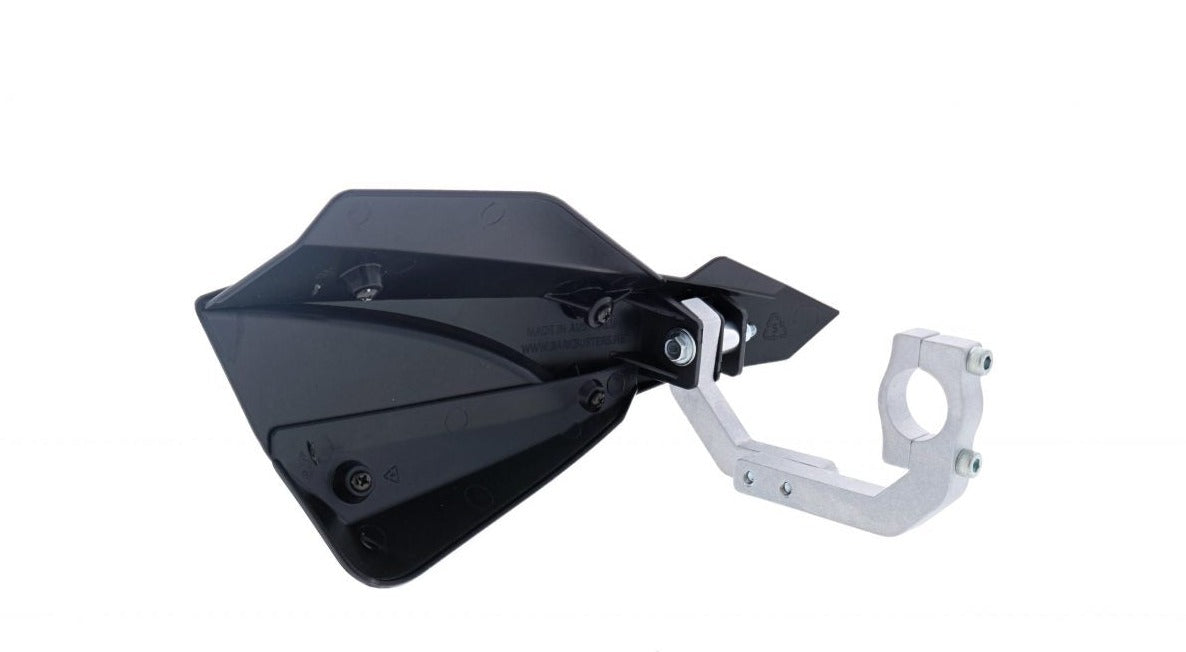 - It has slim profile handlebar clamps for easy installation. The clamps are manufactured from high grade aluminium with adjustable fit in 2 side positions. The SABRE features impact resistant moulded plastic guards. With top & bottom deflectors fitted, riders have the ultimate coverage from roost, trail debris and harsh environments. With the deflectors removed, the low profile guard provides a minimalist design with venting for increased airflow. The SABRE range of handguards has an extensive range of deflector colors matched to popular motorcycle brands.