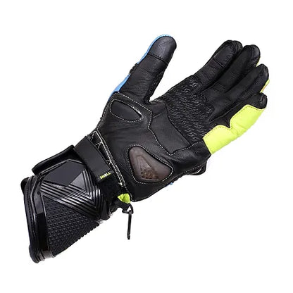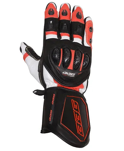 RACER GLOVES is Constructed from Premium grade Leather which is highly abrasion resistant and features a Carbon knuckle protection. These Race Spec Gloves offer high levels of protection, movement and comfort. With a pre-shaped finger construction and a double Velcro cuff closure this glove provides a High level of protection so that you can race or ride at higher speeds too..