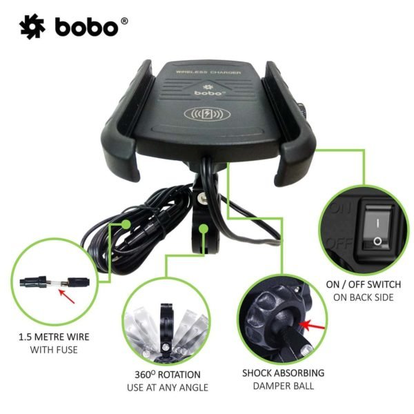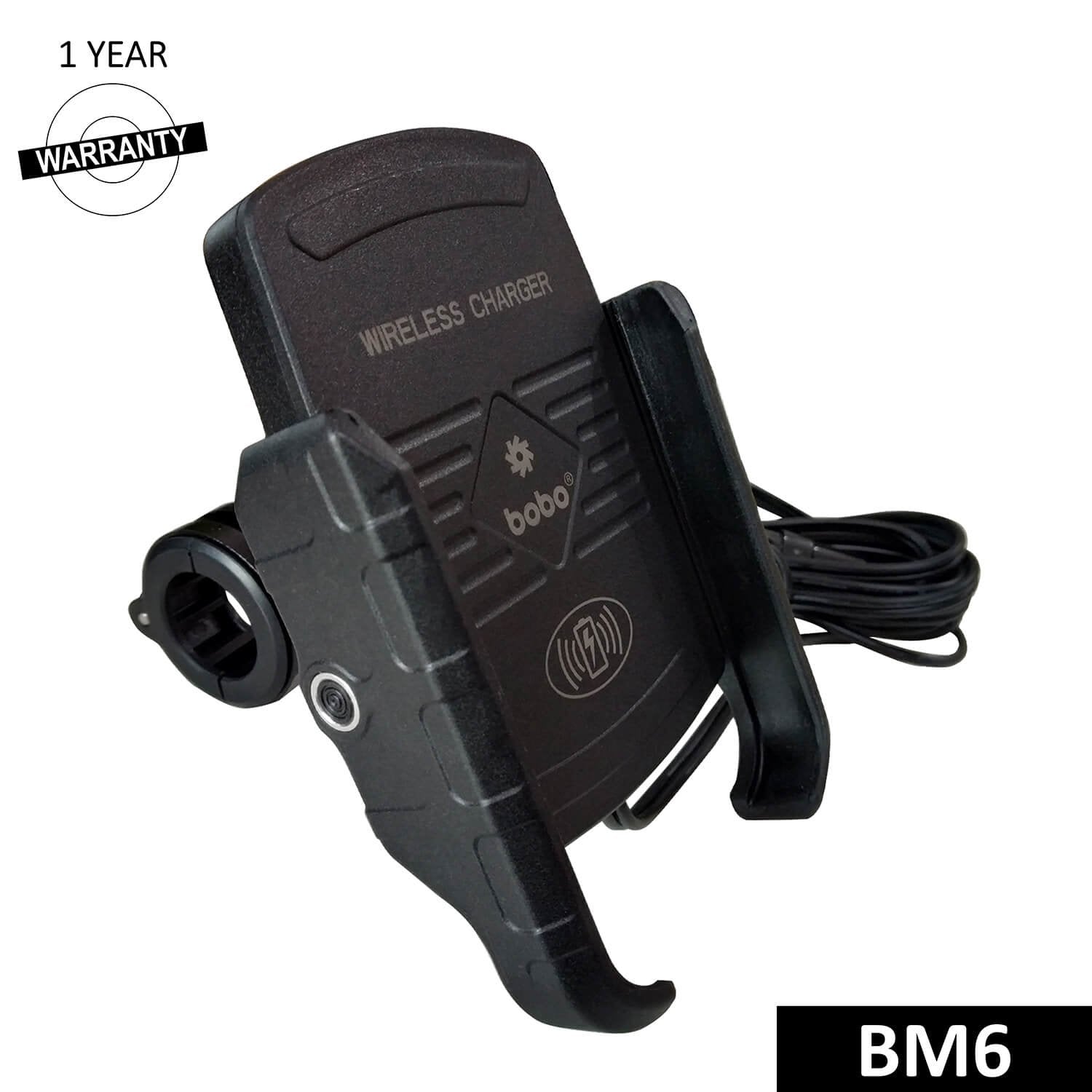 BOBO BM6 Jaw-Grip Bike Phone Holder (with Fast 15W Wireless Charger) Motorcycle Mobile Mount
