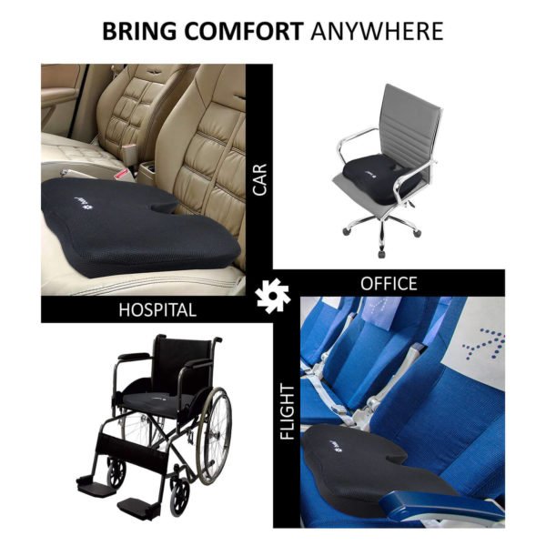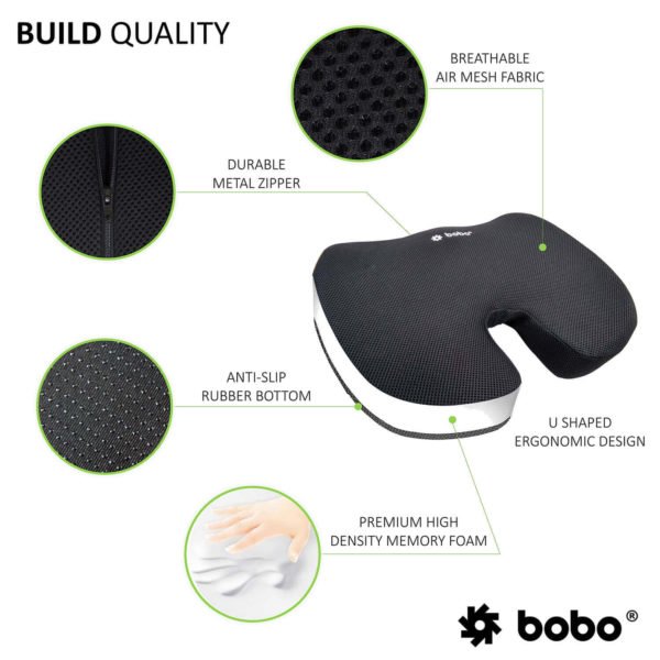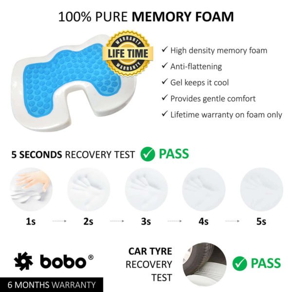 BOBO Gel Enhanced Memory Foam Seat Cushion – Orthopedic Coccyx (Tailbone) Cushion for Back Pain Relief – Sciatica Pillow for Office Chair, Car Seat & Travel