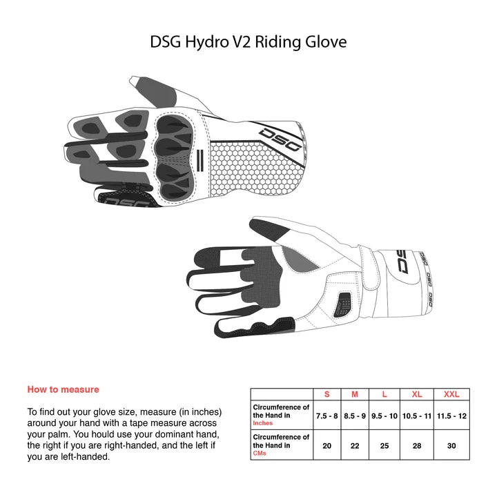 The DSG Hydro V2 Water-poof Touring glove is a performance riding glove packed with protective features such as new knuckle protector. Featuring DSG 100% waterproof and breathable performance technology for effective all-weather protection and a reduced material design offering superior sensitivity on the bike’s controls.