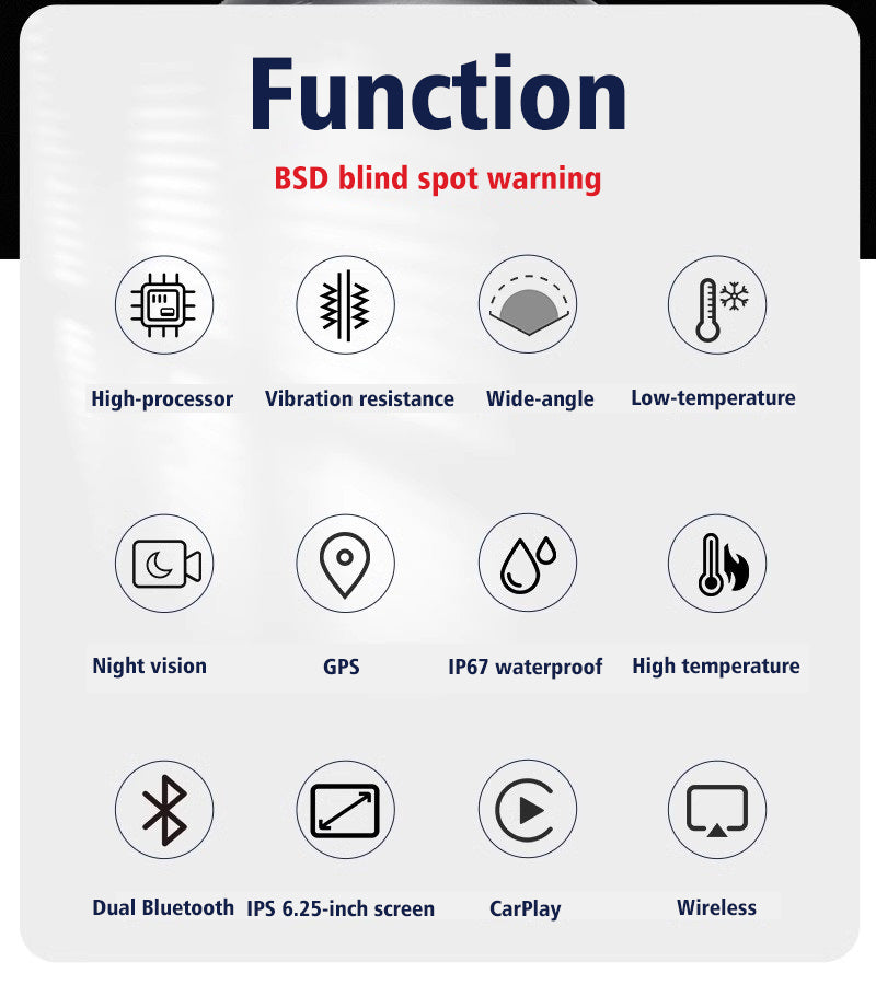 Motorcycle Navigation with Carplay 2K HD Screen with DVR,TPMS and Blind Spot Detection
