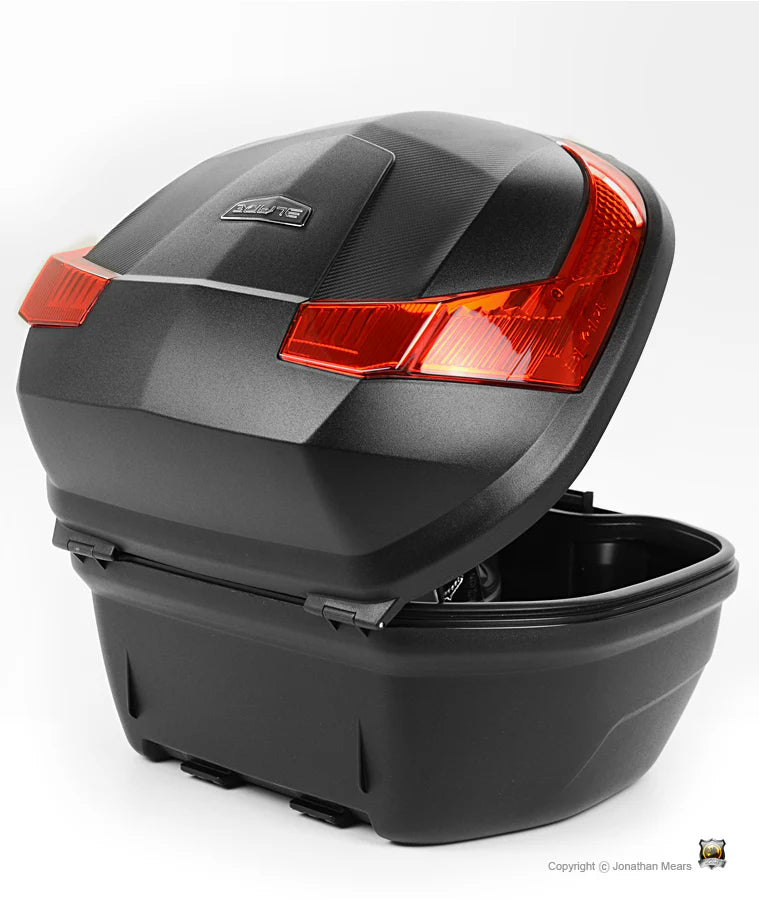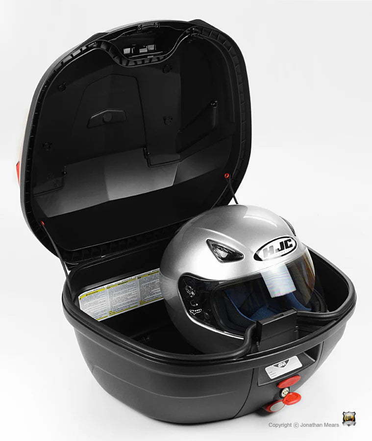 The GIVI B37N Blade Top Box is one of the latest Monolock Boxes from GIVI. This mid-sized GIVI B37N Blade Top Box has the capacity to comfortably fit one full face helmet and is available in a variety of colours as you can see from our colour chart.
