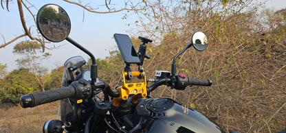 HANDLE BAR RISER WITH MOBILE MOUNT FOR HIMALAYAN 450 - Gold