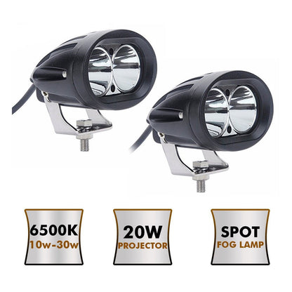 Specifications: Operating Voltage: 10V-30V Waterproof rate: IP 67 LED Power: 20W Beam Type: Spot beam Color Temperature: 6500K Lifespan: 30000H Working Temperature: -40 to 80 degrees Celsius Material: Aluminum Housing Lens material: Hard Polycarbonate (PC) Mounting Brackets: Aluminum alloy brackets Application: Motorcycles: Honda, Bajaj, Hero, KTM, Royal Enfield, etc. Off-road vehicle:Jeep, Wrangler, SUV, UTE, 4x4 ,4WD, ATV, UTB , Golf, Toyota , Chevy, Nissan Titan ,Silverado, Pathfinder, Hummer H2 H3, Yamaha Viking, Dodge Ram. Special vehicle:(Fire engine, police cars, rescue vehicle) forklift, trains, boat, bus, and tanks. Engineering vehicles: Excavator, mining truck etc.