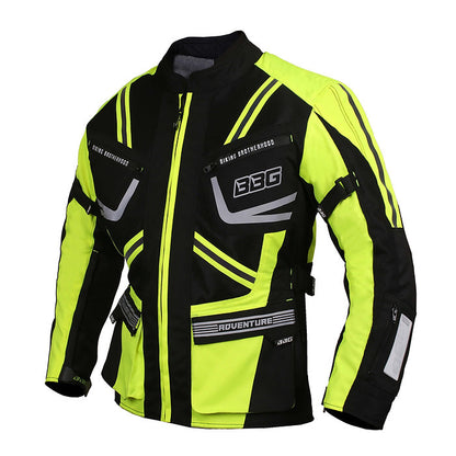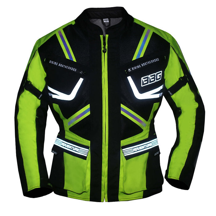 INDIANA ADVENTURE Touring Jacket is the new version after the good result of our previous Adventure jacket INDIANA ADVENTURE Jacket combines quality and class in a clean, simple and well-executed new Unique design with added more reflectors. Manly yet sporty, it comes with 2 color options (Neon & Grey) with latest CE-approved Level-2 armors on both the Elbows & Shoulders. The jacket comes with Internal Thermal liner & external waterproof jacket and is highly breathable mesh.