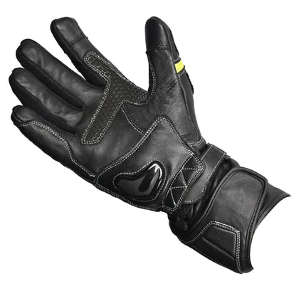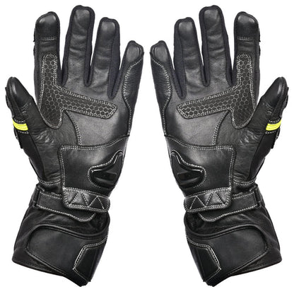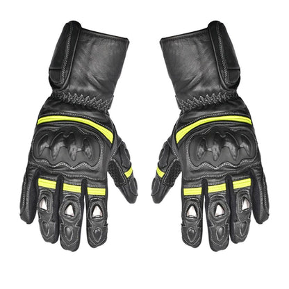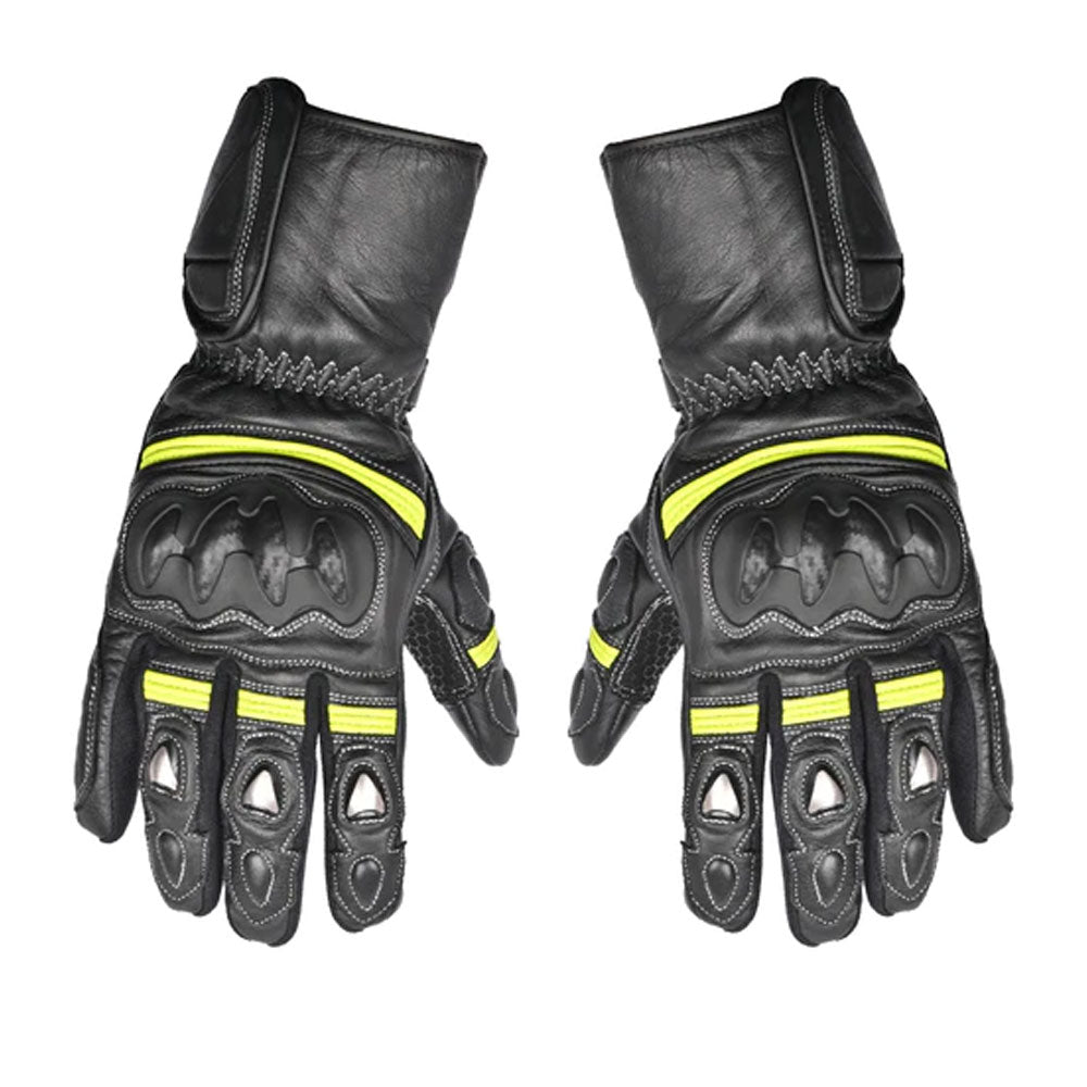 Made from top-quality Full-grain leather.Index finger and Thumb equipped mobile touch soft patch for ease of mobile use without removing the gloves. Dual-layer leather reinforcement in the palm. Carbon fiber knuckles for maximum safety. TPU molded palm slider. TPU molded tips on fingers. Polyester lining on the back of hand for comfort. Adjustment strap at wrist. Double velcro closure on the forearm for a snug fit of the gloves. Pre-curved wrist, fingers, and palm. Heavy-duty bonded nylon thread shell construction.The double stitching on key areas. Extra Eva padding on thumb and cuff. Extra leather patches on index finger and thumb. Riding gloves provide complete safety to hands and joints. These biker gloves for the winter season are the best product available in this season.