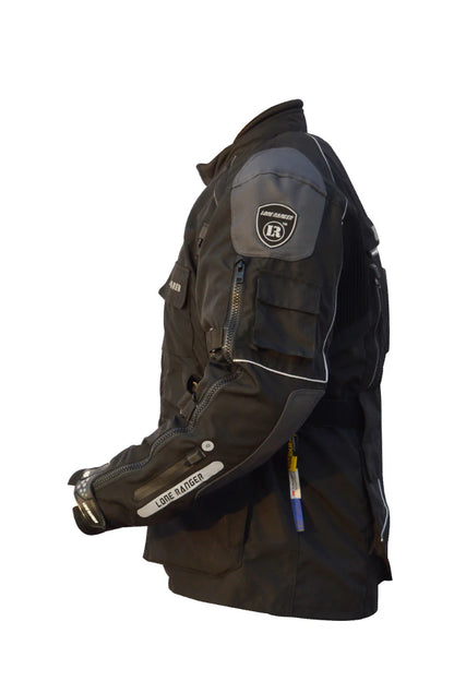 The Lone Ranger Wayfarer touring jacket is the epitome of luxury. This jacket is made with a fine selection of premium quality materials and superb all-around protection such as protection against shearing and abrasion.