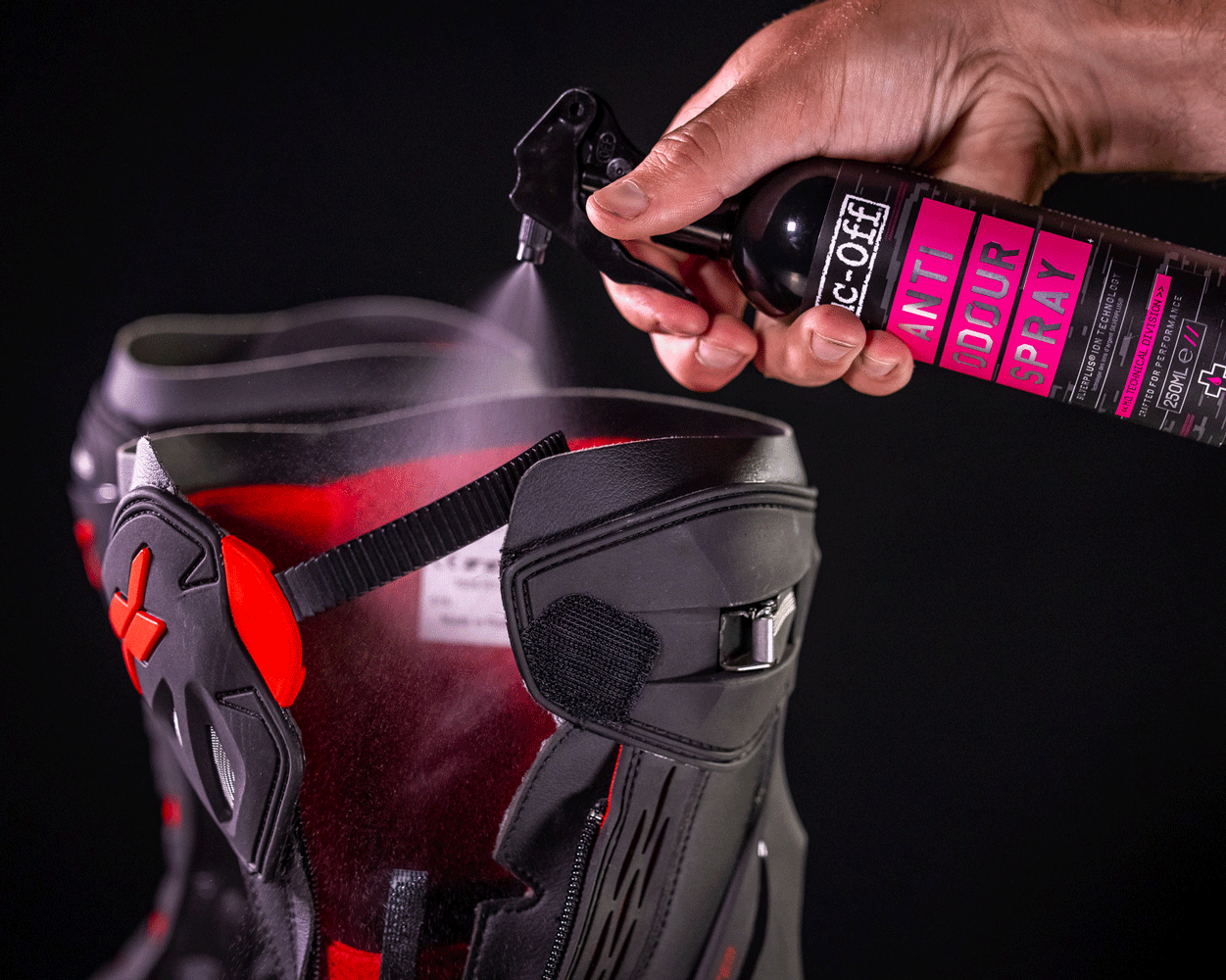 - Been shredding so hard that your kit has started to smell? You need Muc-Off Anti-Odour Spray! It’s a highly effective, easy to use anti-odour spray that uses SILVERPLUS® silver ion technology.
