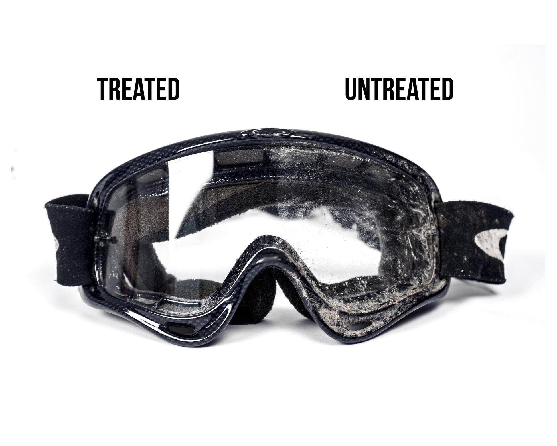 Quickly and safely remove dirt, dust, grime, snow, sweat and oily residue from all helmet visors, eye wear and goggles!