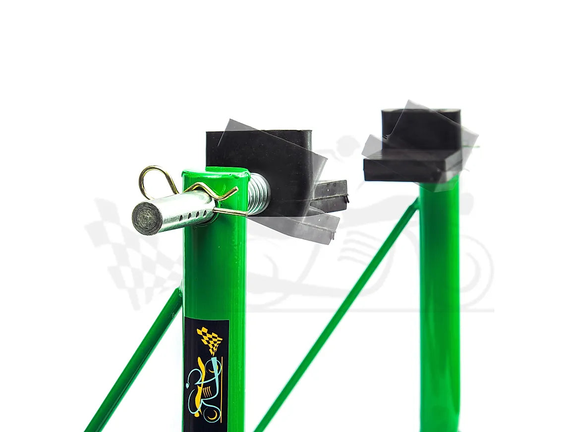 Non-Dismantable Universal Rear Paddock Stand with Skate Wheels - Green - (Bike Wt upto: 350 kgs)