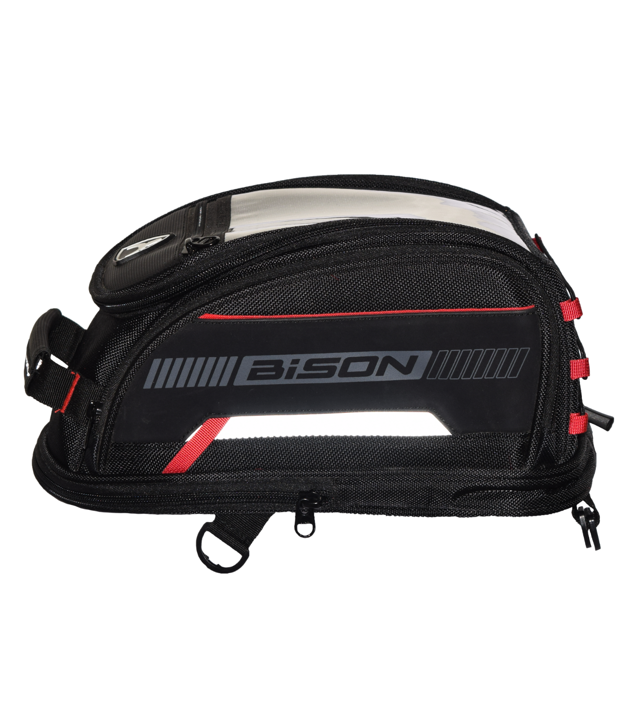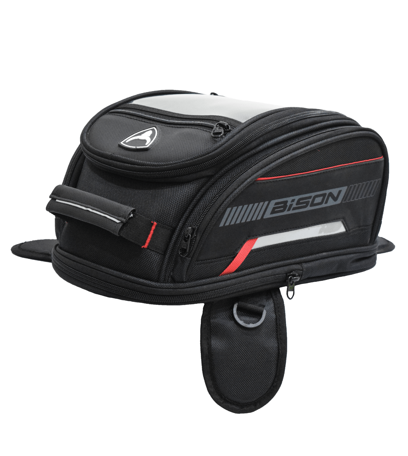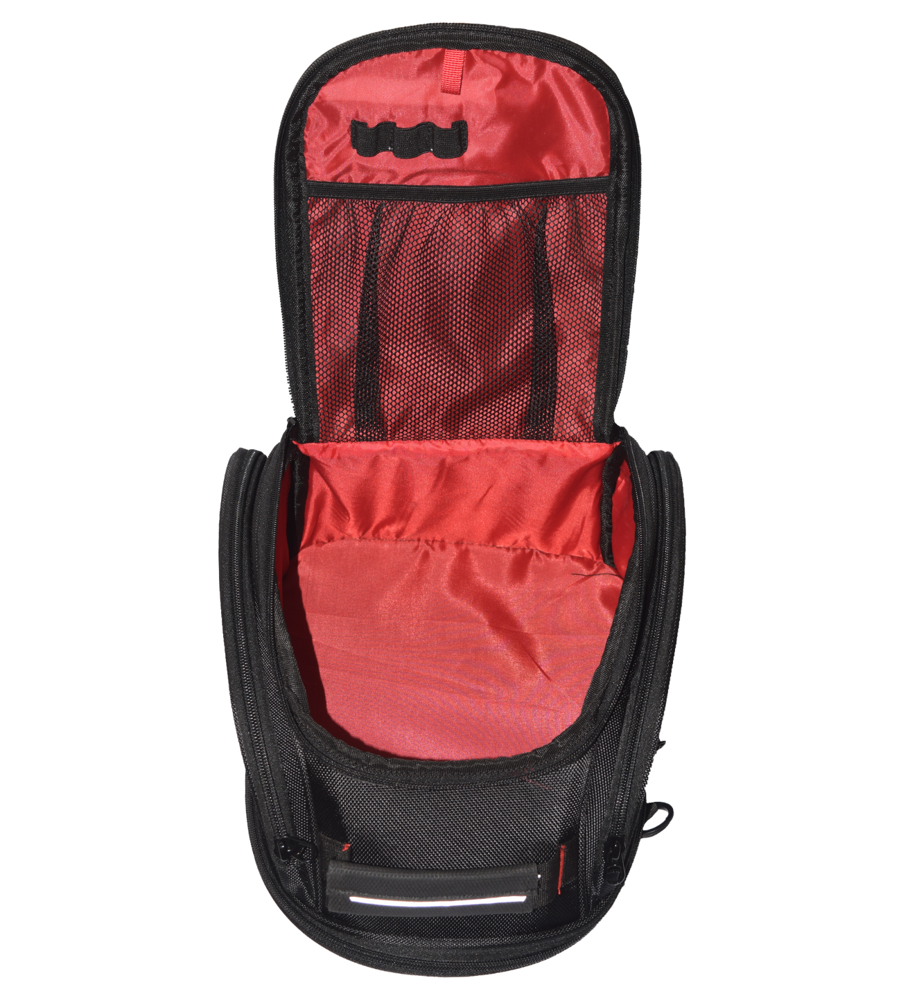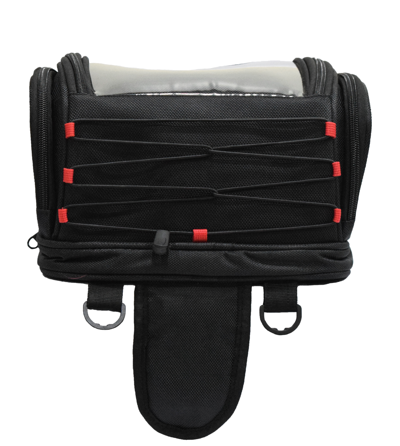 - Elastic ropes on the front side for gloves, for a quick break while riding.