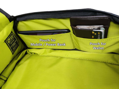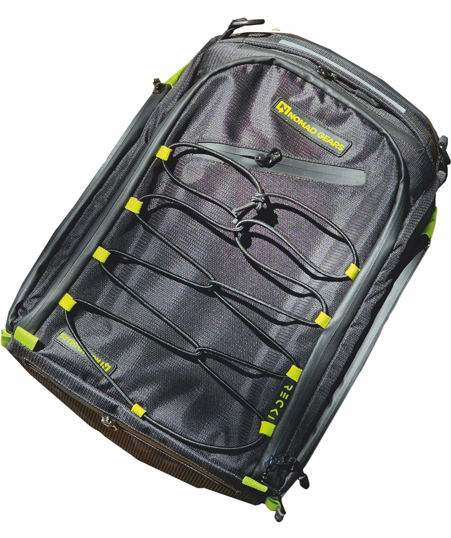 Heavy duty elastic rope to secure the gloves / Rain Gear on top of the bag
