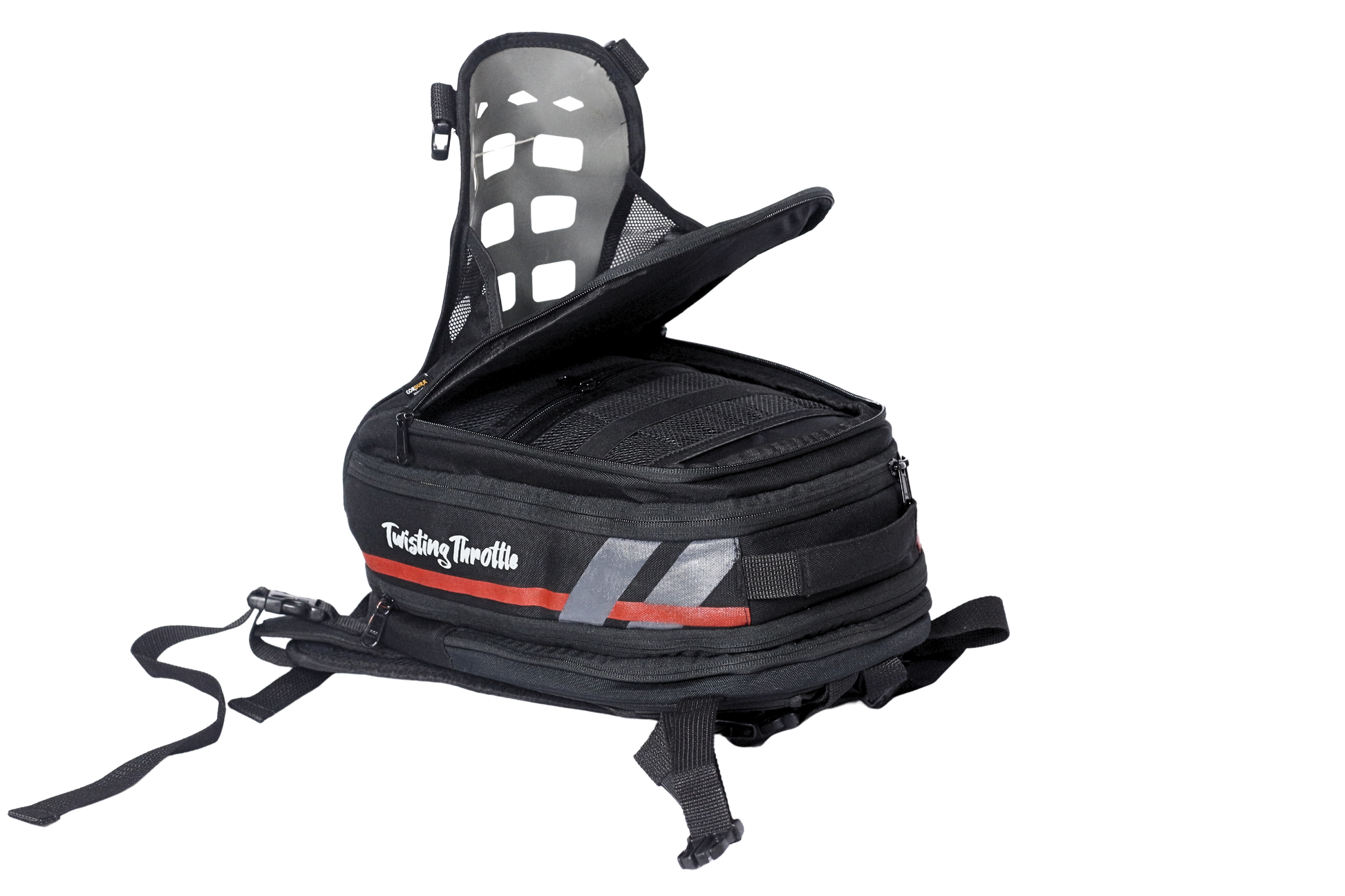 The Magnetic Tank Bag from Twisting Throttle is purpose-built for riders who value functionality, durability, and sleek design. Compact yet spacious, it offers ample room for everyday riding essentials as well as camera gear and accessories, making it the perfect companion for both casual rides and long adventures.