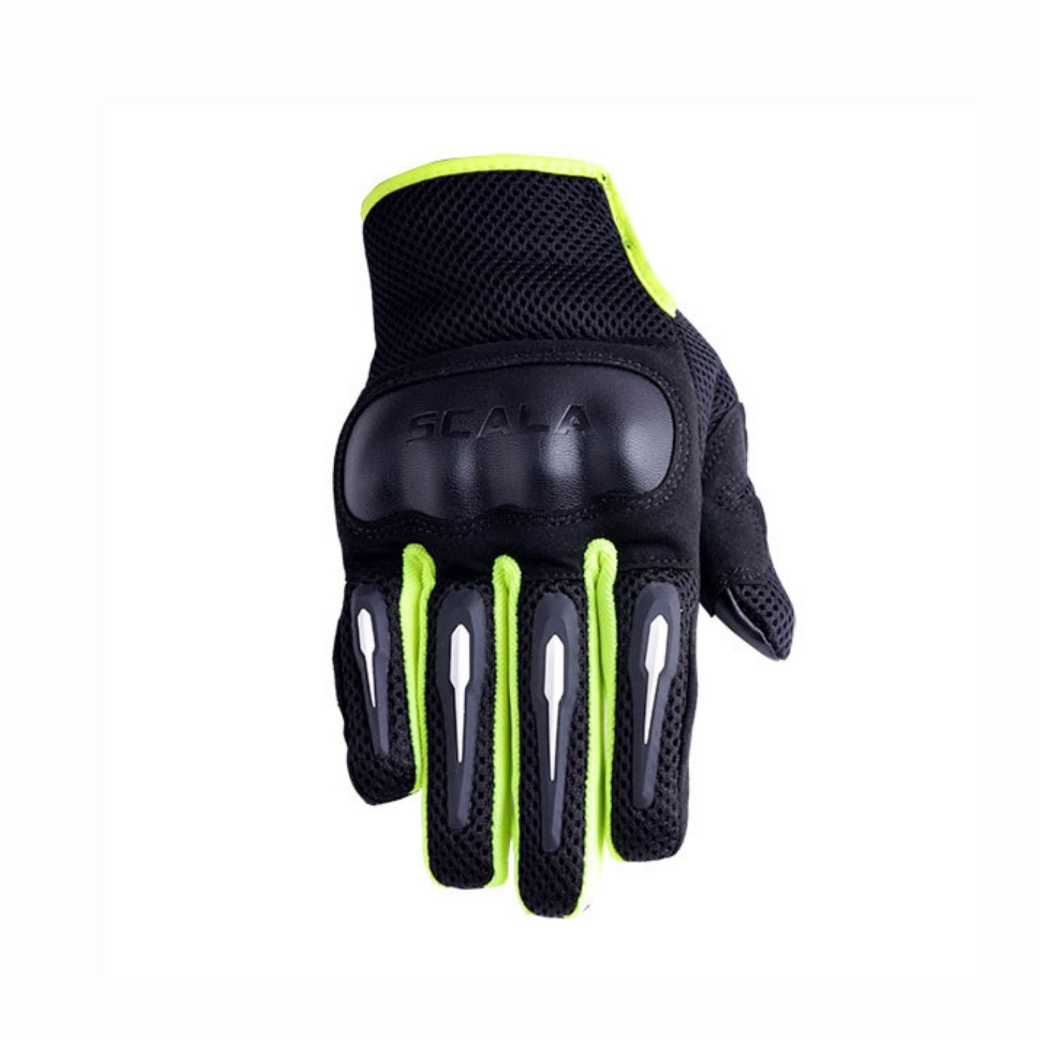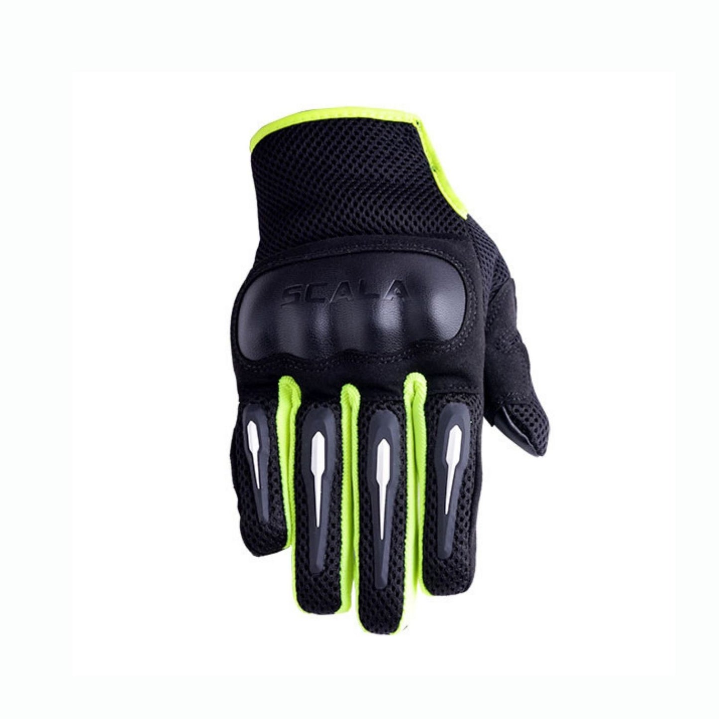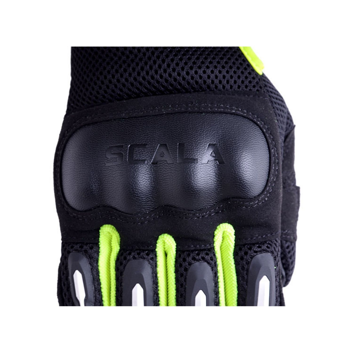 The SCALA-AIR gloves keep protection and style in focus. The 100% poly stretch fabric and 100% polyester air mesh keep the glove well-ventilated all through the ride. It comes with TPR rubber knuckle protection and takes it a notch above by adding the feature at the back too. With TPR addition at both, front and back, the gloves provide enhanced protection at all times. The microsuede patch on the palm enables solid grip and a sponge at the palm area reinforces the grip with comfort.
