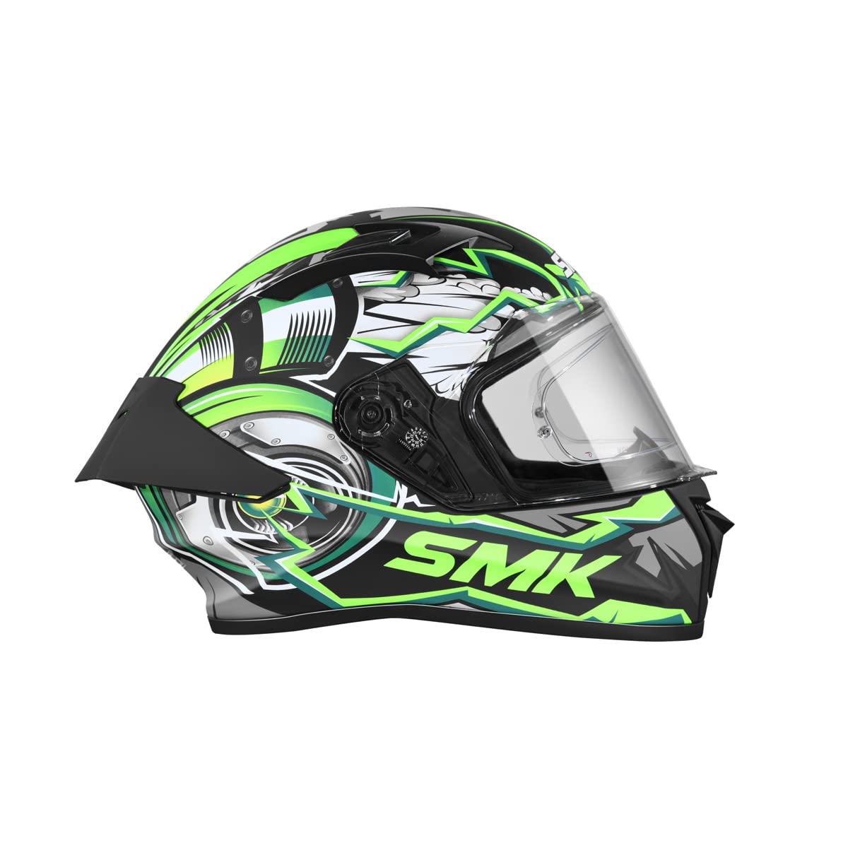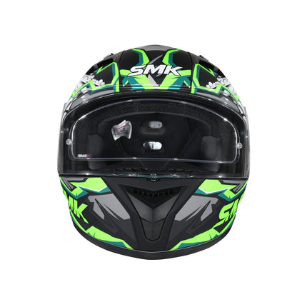 SMK Stellar Sports Turbo Matt Black Green Grey (MA286) Helmet