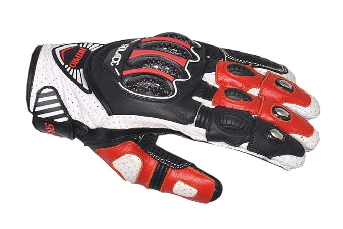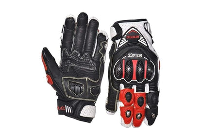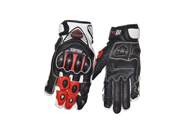 Colour :- Black || Material :- Leather.The pre curved armour design protects your hands and gives you a better grip making balanceThe palm side is made of anti slip and grip enhancing material giving you a very perfect and solid gripThe outer is made of high density plastic to stand extreme shocksSpecial ergonomic design provide maximum protection for your hands/fingers and for cool appearance