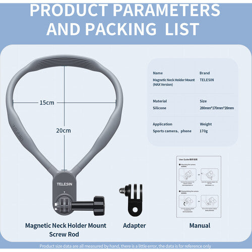 1 x Magnetic neck holder mount + 1 x Adapter + 1 x Screw rod