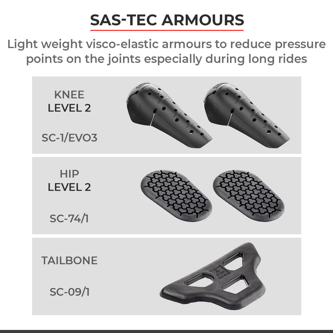 This is further enhanced by using highly ventilated Sas-Tec level 2 armours that allow sufficient air to pass through keeping you cool throughout the ride.